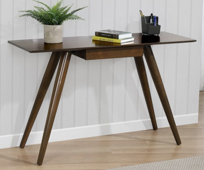 The Winners Only® Accent Dark Brown 48" Writing Desk features flared legs, one drawer and a kneehole with a width of 26".Read More
